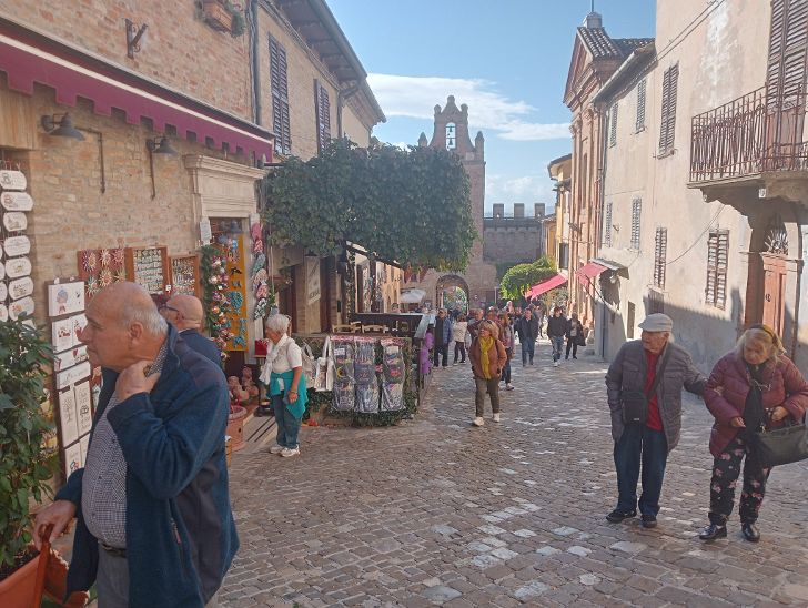 Noi arriviamo dall’Umbria, racconta una bella ragazza che sventola una bandiera arancione per farsi individuare dal suo gruppo. Stamattina il borgo di Gradara era pieno di turisti. Nel parcheggio grande si contavano una decina di pulman, camper e automobili…