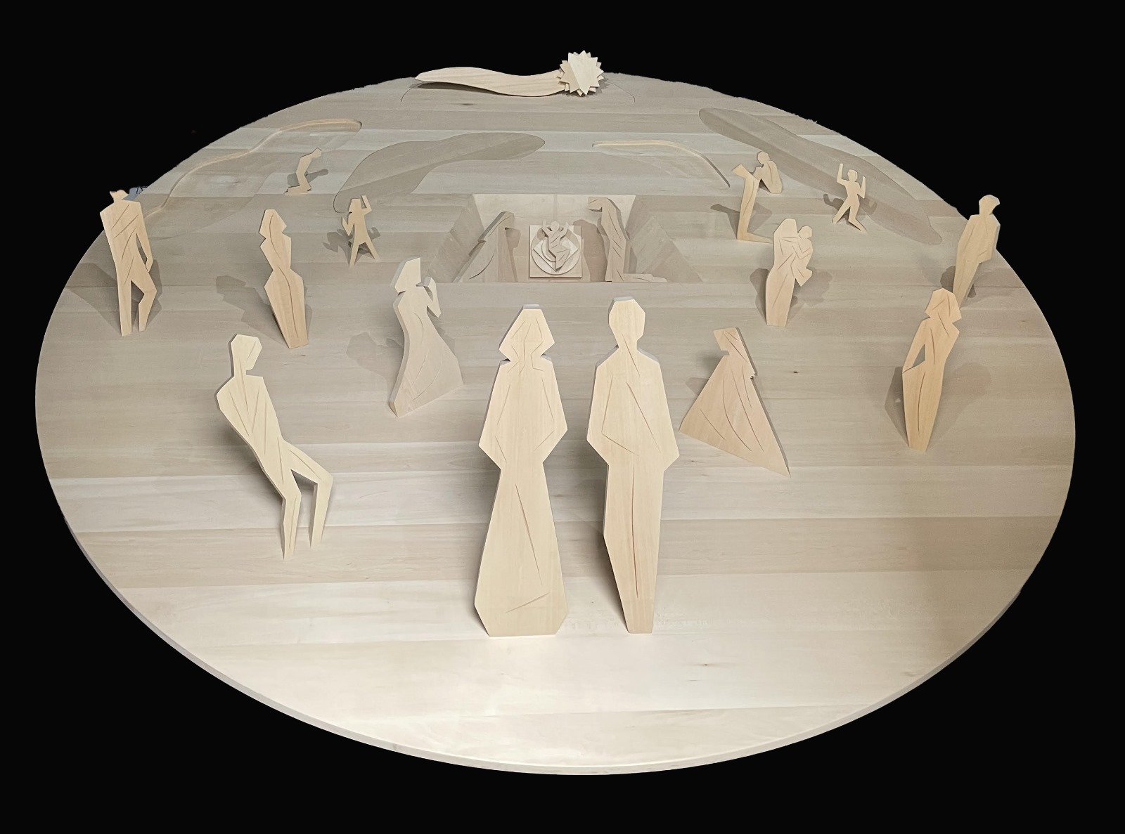 Oltre al presepe saranno esposti i bozzetti preparatori e una selezione di opere lignee in armonia con il tema dell’evento con un linguaggio informale, omogeneo e minimalista
