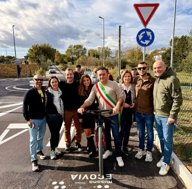 Via Grotta, inaugurato la ciclo-pedonale; mette in sicurezza, per pedoni e ciclisti, il tratto tra la rotatoria sulla Statale 16 e la nuova rotonda posta all’incrocio con le vie Primo Maggio e Marecchia, a Villaggio Argentina.