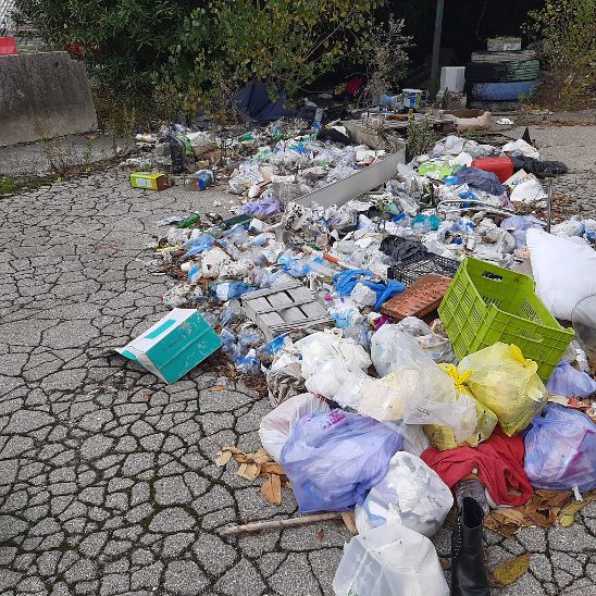 Rimini. Cartolina davanti all'aeroporto. Istantanea davanti all'ex hotel Coronado, stamattina ore 10. Un tanfo incredibile!