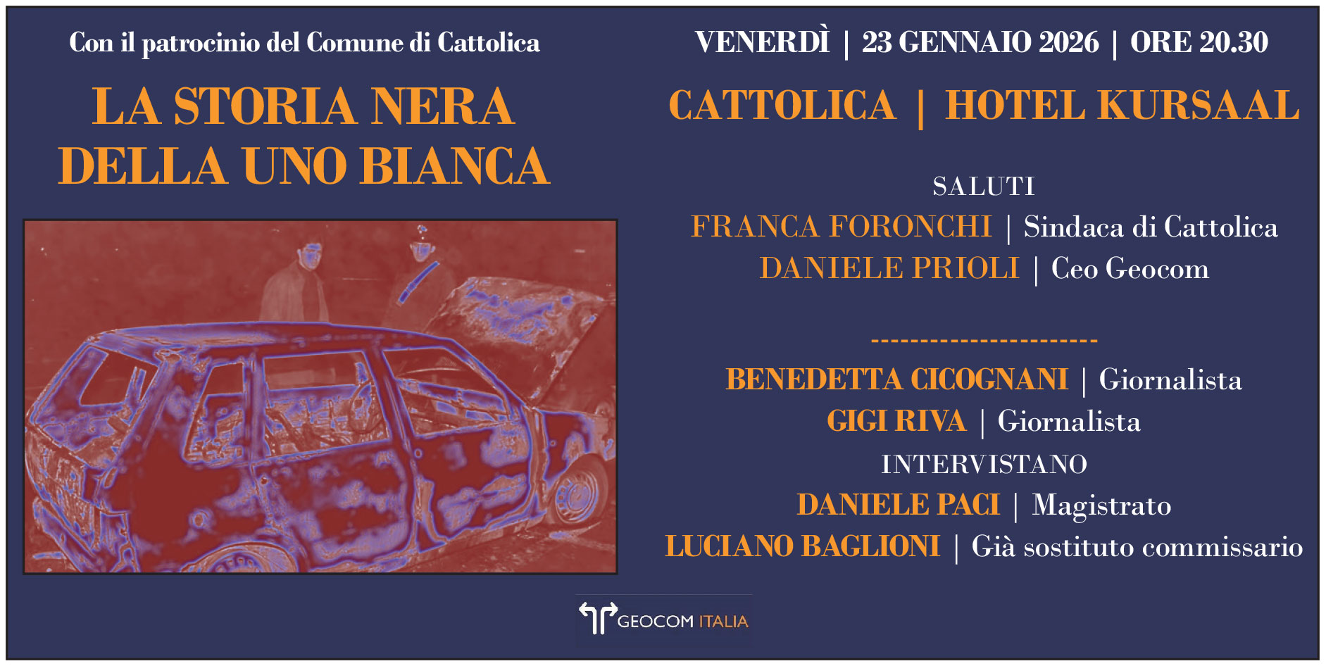 • Cattolica. Convegno sulla Uno Bianca il 23 gennaio alle 20.30 all’Hotel Kursaal. Gigi Riva e Benedetta Cicognani intervistano il magistrato Daniele Paci e il poliziotto Luciano Baglioni 20 Gennaio 2026