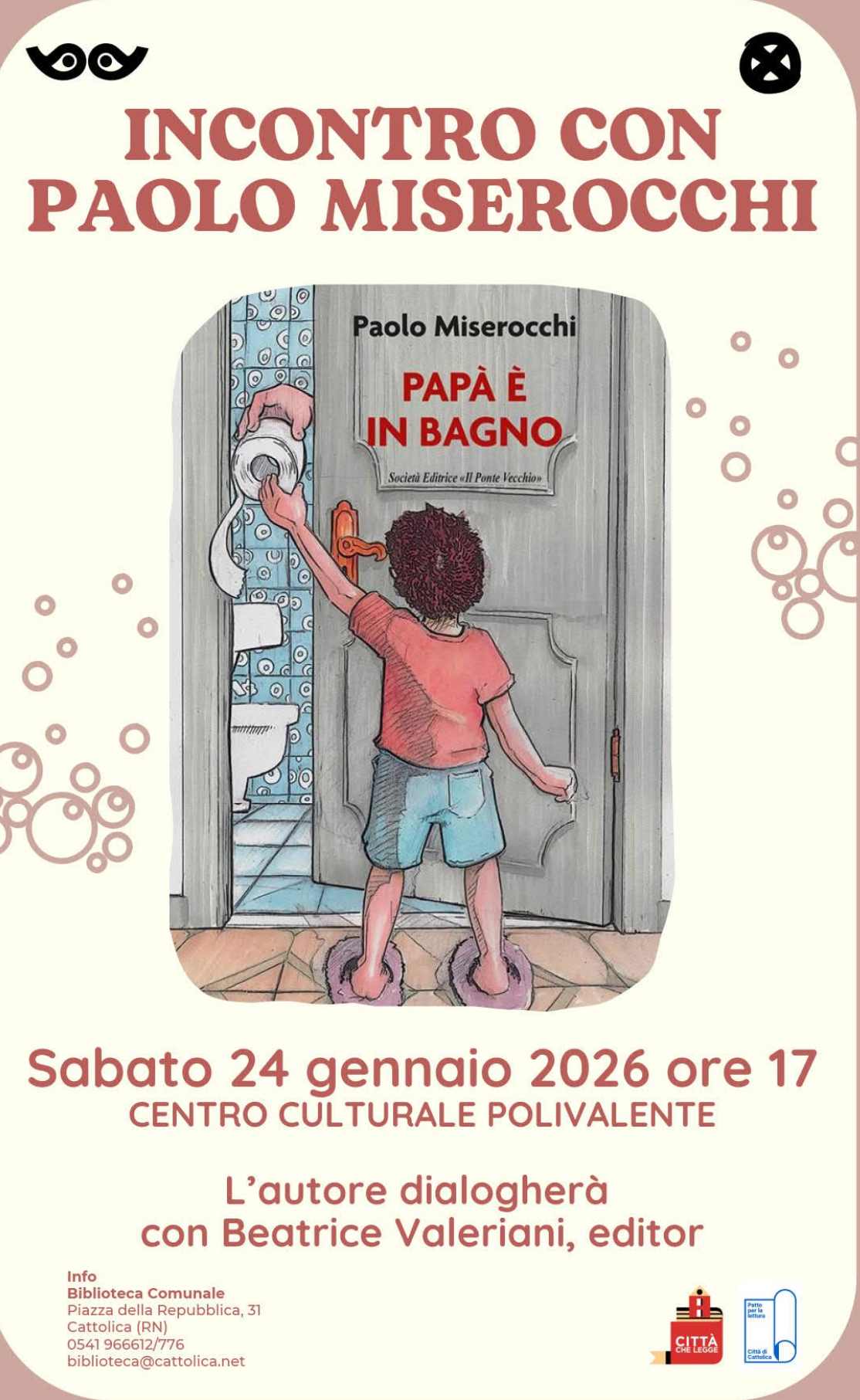Cattolica. Paolo Miserocchi presenta il libro “Papà in bagno” il 24 gennaio alle 17.