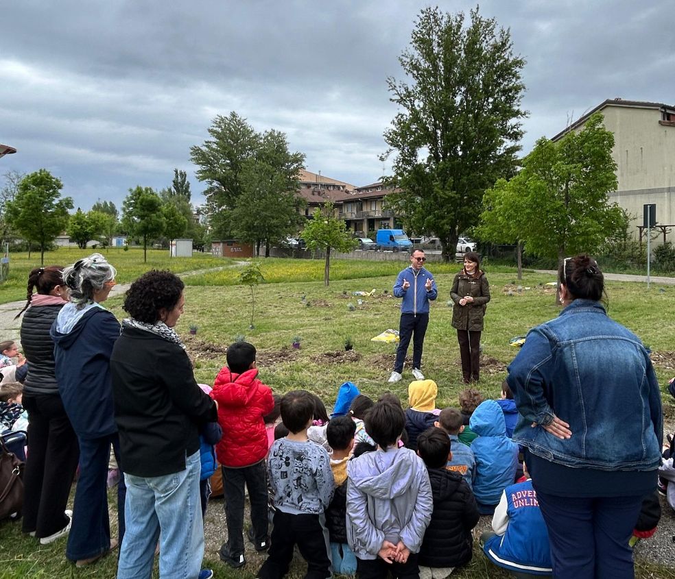 “Abbiamo aderito a questo progetto che prevede in diverse città dell’Emilia-Romagna l’intitolazione dei parchi ad Alberto Manzi – ha spiegato il vice-sindaco Vaccarini -, grande maestro di scuola elementare che ideò e condusse il programma tv “Non è mai troppo tardi” con cui nel 1960 portò all’alfabetizzazione di tantissime persone. Fu un insegnante davvero all’avanguardia, che svolse un ruolo politico e di responsabilità di primo piano, ricoprendo anche la carica di Sindaco. E nella sua attività didattica ed educativa mai mancava di tracciare e arricchire con disegni la spiegazione, accompagnando il percorso di apprendimento degli studenti. Questo progetto è stato coordinato grazie al lavoro di Valeria Belemmi, Alessandra Falconi, responsabile del Centro Zaffiria e Alberto Manzi, Filomena Galvani e Mara Fraternali, nuova responsabile del Laboratorio di educazione all’immagine al posto di Valeria Belemmi. Grazie anche a tutte le maestre, al corpo docente e agli operai del Comune che si sono occupati dell’installazione delle lettere e della sistemazione del verde. Solo insieme si ottengono i risultati più belli e questo parco è bellissimo perché è il frutto di un lavoro corale che ha visti protagonisti bimbi e bimbe, accompagnati dagli adulti. Un parco che crescerà con loro, come le piante che hanno messo nella terra con le loro manine. Ma questo Parco è in continuo divenire e vuole giocare con i piccoli e i loro genitori. Ci sono infatti disegni da completare. Venite qui e giocate insieme, con il Parco, mamma, papà e tutta la famiglia”.
