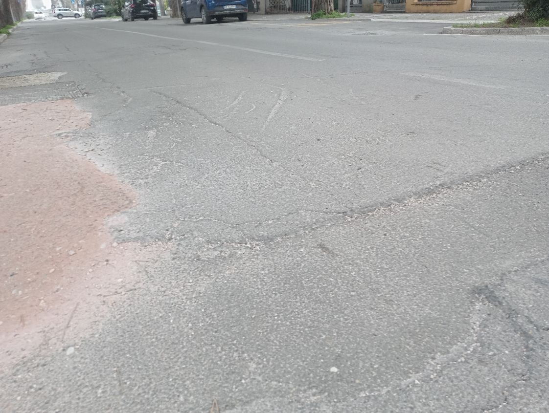 Misano Adriatico. Allegro ma non troppo. “Solchi” nelle strade di Misano Mare. Sono il lascito di una lunga serie di lavoro. Sono state eseguite delle trincee. Rattoppate con il catrame. L’assestamento ha provocato le depressioni. A questo si aggiungano gli avvallamenti delle radici dei pini… Insomma, strade misanesi ottime per le gimkane…