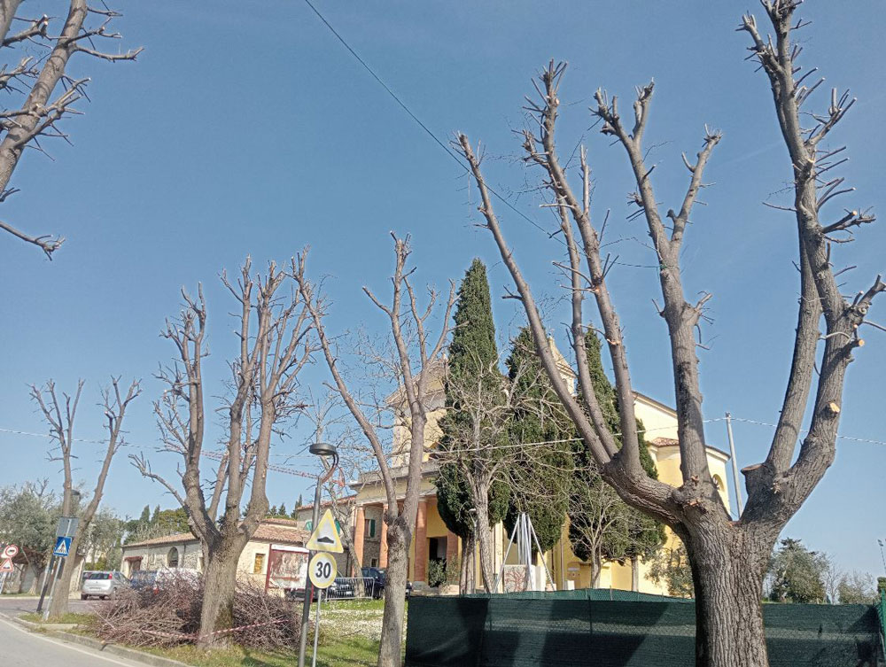 Misano Adriatico. Misano Monte, poveri tigli capitozzati. Bellissimi, si trovano all’ingresso della frazione arrivando da Misano Cella. Dopo la salitella della chiesa, la strada principale è costeggiata dai pini.