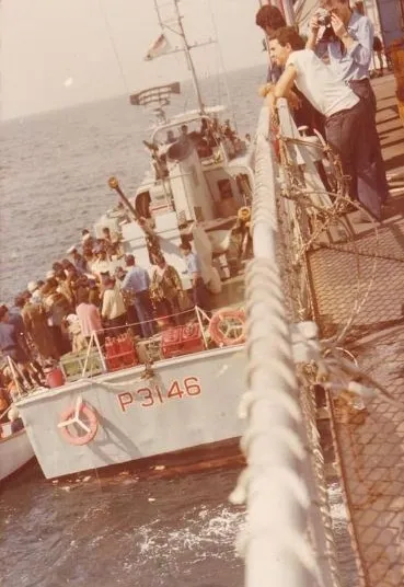 Il 30 aprile 1975 Saigon cade e con lei tutto il Vietnam del sud. I comunisti si scatenano in vendette verso militari e civili, instaurando un regime totalitario. Al loro arrivo un milione di persone viene prelevato per essere “rieducato”, a migliaia vengono tolte case, beni, proprietà. Nel 1979, la popolazione cerca di scappare ma non può farlo via terra, perché i paesi confinanti li respingono; l’unica opzione consiste nel prendere barconi improvvisati e gettarsi in mare. Le immagini di questi disperati fanno il giro del mondo e dividono l’opinione pubblica mondiale. I rifugiati sui barconi scoprono di non poter sbarcare da nessuna parte e vengono ribattezzati “boat people”, disperati con a disposizione due cucchiai d’acqua e due di riso secco al giorno. Quando le immagini dei boat people vengono rese pubbliche da Tiziano Terzani il 15 giugno 1979, Pertini chiama Andreotti e dà ordine di recuperarli e portarli in Italia, una richiesta folle perché il nostro paese non ha mai fatto missioni simili per obiettivo e distanza. Insieme al ministro della difesa Ruffini, scelgono come braccio destro Giuseppe Zaberletti. Sulle tre navi allestite ad hoc e su cui sono stati caricati e istruiti medici, infermieri, interpreti, medicinali e vestiti, in totale ci sono: 450 posti letto sulla Vittorio Veneto, 270 sulla Andrea Doria e 112 sulla Stromboli. Il 26 luglio, l’avvicinamento al primo gommone che stava colando a picco. Il primo agosto a bordo delle navi non c’è più spazio fisico, hanno navigato per 2640 miglia e salvato 907 esseri umani. Il 21 agosto 1979 le tre imbarcazioni entrano in bacino San Marco. Ad accoglierli c’è un mare di gente comune. Nascono campi d’accoglienza a Chioggia, Cesenatico e Asolo. Il popolo italiano risponde in massa; vengono raccolti 26.500.000 di lire tramite raccolta di abiti usati e altrettanto arriva tramite donazioni private. Raro esempio di rapidità e umanità, la Missione Vietnam fu sostenuta dal Governo e dalla Chiesa attraverso il Ministero della Difesa e la Marina Militare con il grande supporto della rete diplomatica italiana.