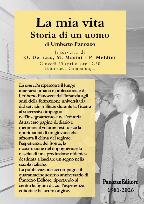 L’incontro celebra il quarantacinquesimo anniversario di attività di Panozzo Editore, riportando al centro la figura da cui l’esperienza editoriale ha avuto origine.