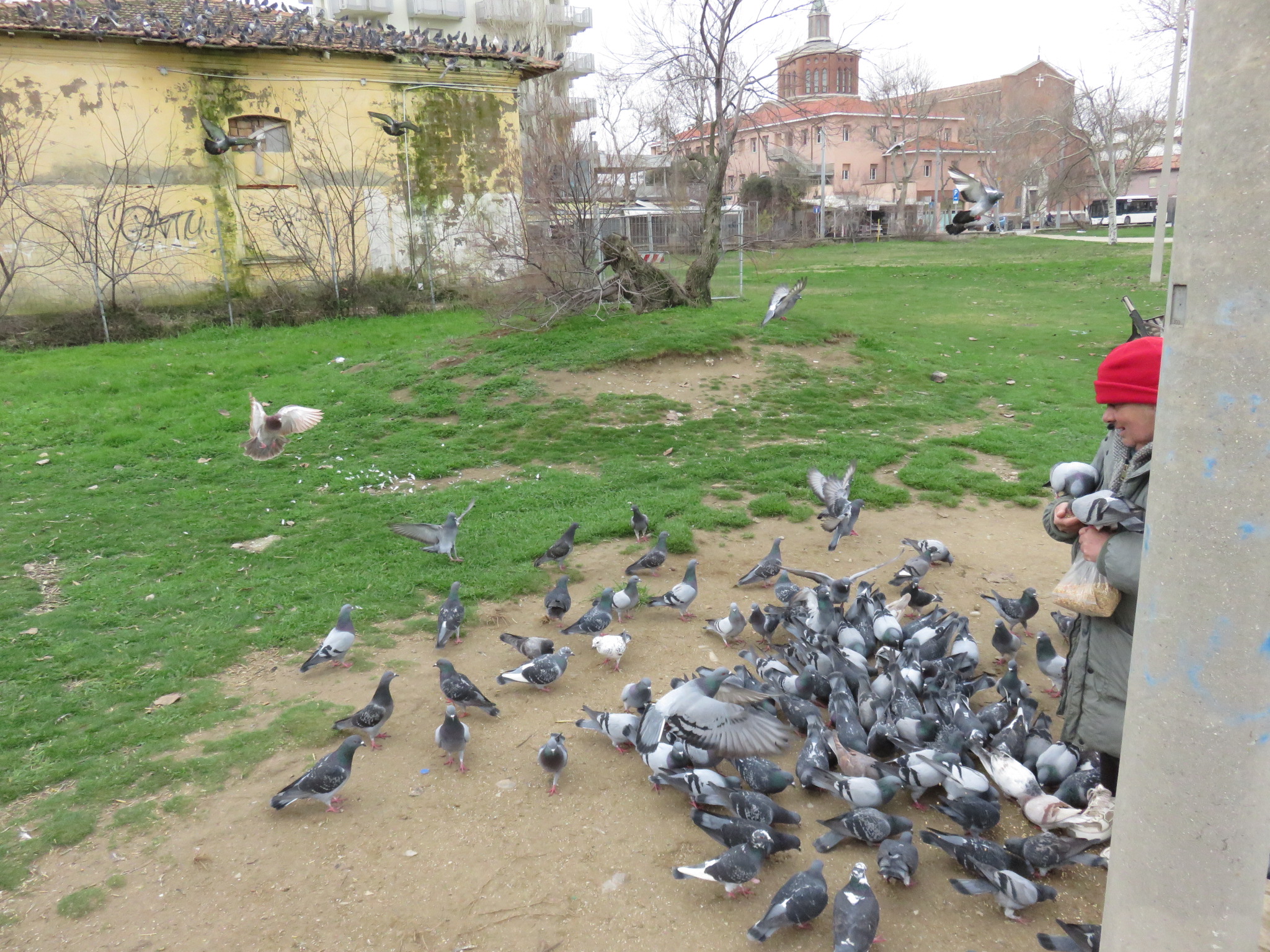 Le racconto una storia di grande bontà e anche di grande cattiveria. E’ una signora di oltre 60 anni, disoccupata e dimenticata, da più di sei anni ha scelto un lavoro che nessuno le ha mai assegnato. Più che un lavoro è un amore. Nutre, cura e accudisce i piccioni al Parco Murri di Bellariva. Non si limita a dargli briciole di pane. Effettivamente ormai sanno tutti, anche se molti lo ignorano, che non è quello un nutrimento adatto a piccioni, papere o qualsiasi volatile, specie se selvatico e con una dieta fatta di semi, insetti e/o bacche, nello stato naturale delle cose. Erica è in costante contatto con il CRAS di Rimini quando i piccioni si ammalano; li cura lei stessa all’occorrenza. A sue spese o per donazioni di amici. Uno dei piccioni, dice, ha 13 anni. Un età quasi impossibile per un volatile di questo tipo. Penso sempre ai polli di quell’azienda, “garantiti 30 giorni” e spacciati come in stato di benessere e rispettando i ritmi naturali di crescita, “biologica”. Ma in quale mondo? Invece con i piccioni Lei ci parla, li carezza, li chiama per nome e loro rispondono. È la nostra vecchietta di Mary Poppins. Sempre laggiù. E non è solo una romantica. Non è una matta. Parla meglio di tanti cosiddetti intellettuali. Ha una testa. E fa le cose con criterio, per il benessere degli animali. E basta.