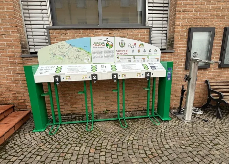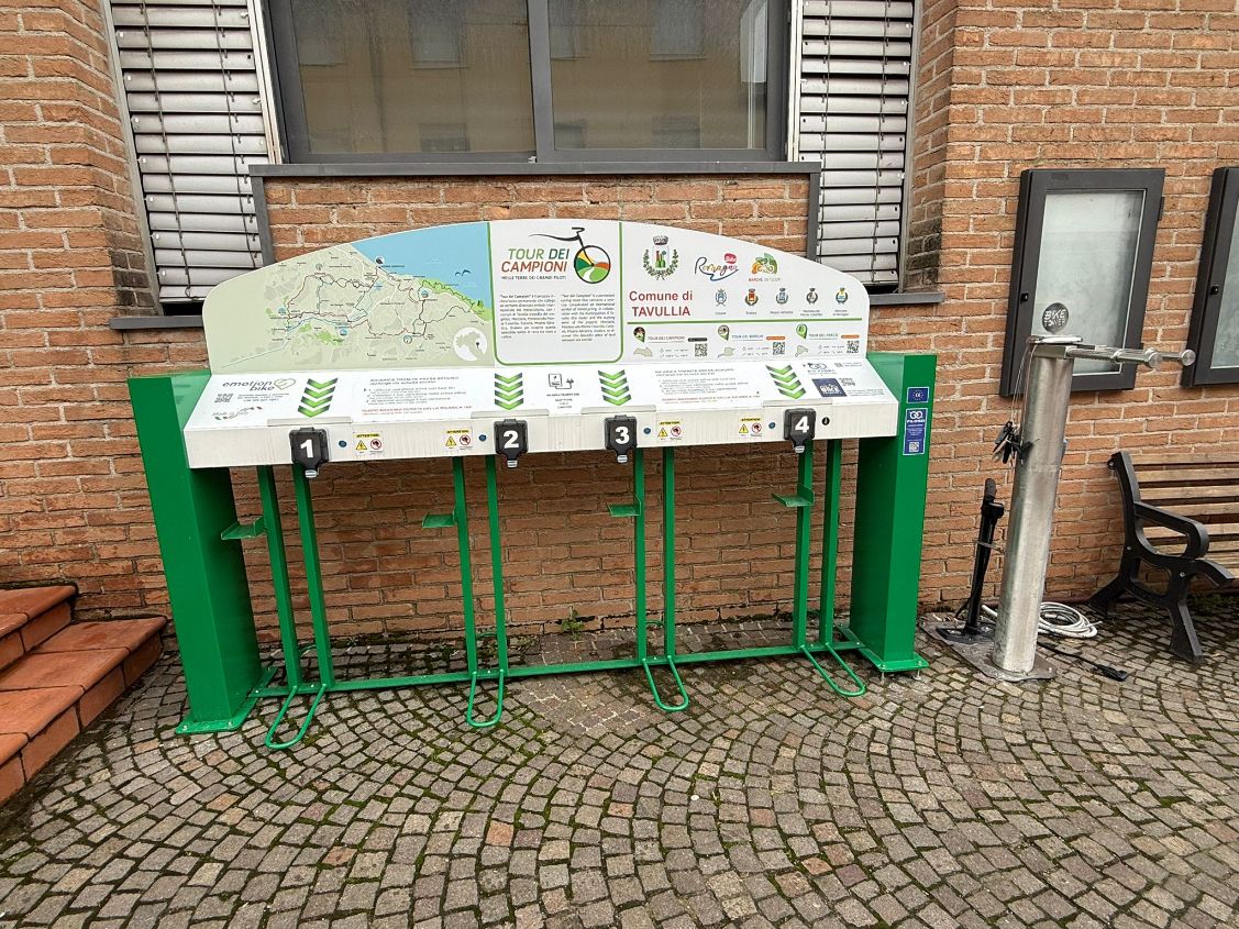 Anche Comune di Tavullia ha installato una colonnina di ricarica per e-bike, posizionata davanti alla sede comunale e già funzionante, a disposizione di cittadini e visitatori.