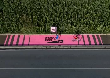 Rimini, pista ciclabile rosa e gialla come omaggio a Marco Pantani su via Montescudo. Il giallo e il rosa lungo...
