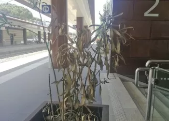 Poveri oleandri rinsecchiti. Chissà quali pensieri scorre nella loro linfa. Si trovano nei vasoni quadrati di design della stazione di ...
