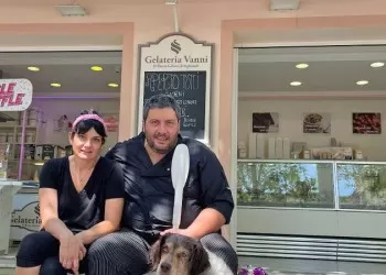 Laura, Daniele e Zeus Gelateria Vanni: nasce l'Happy bau, il gusto per cani. Novità assoluta a Misano Adriatico dove ...